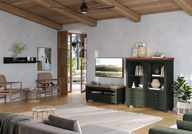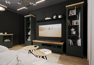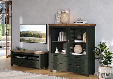 Тумба Эмили под телевизор с выдвижным ящиком Олива темная, Таксония