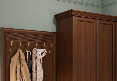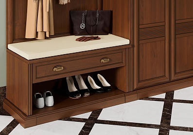 Роскошный комплект «Изотта» в стиле итальянская классика подходит для создания солидного, респектабельного интерьера. В комплект входят два узких шкафа-витрины, позволяющих продемонстрировать статус хозяев дома путем размещения коллекционного сервиза или необычных декоративных элементов. Также комплект включает в себя изящную полку и длинную тумбу с тремя выдвижными ящиками и двумя отсеками с распашными дверцами.