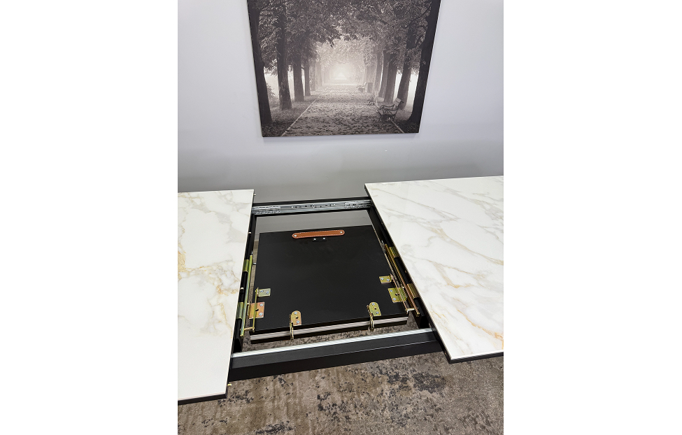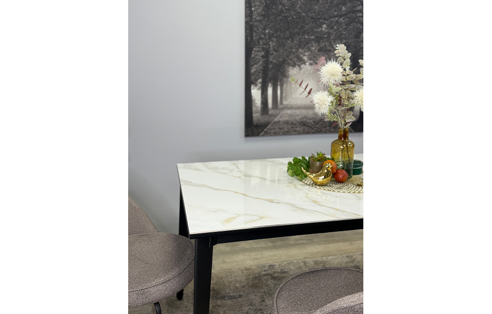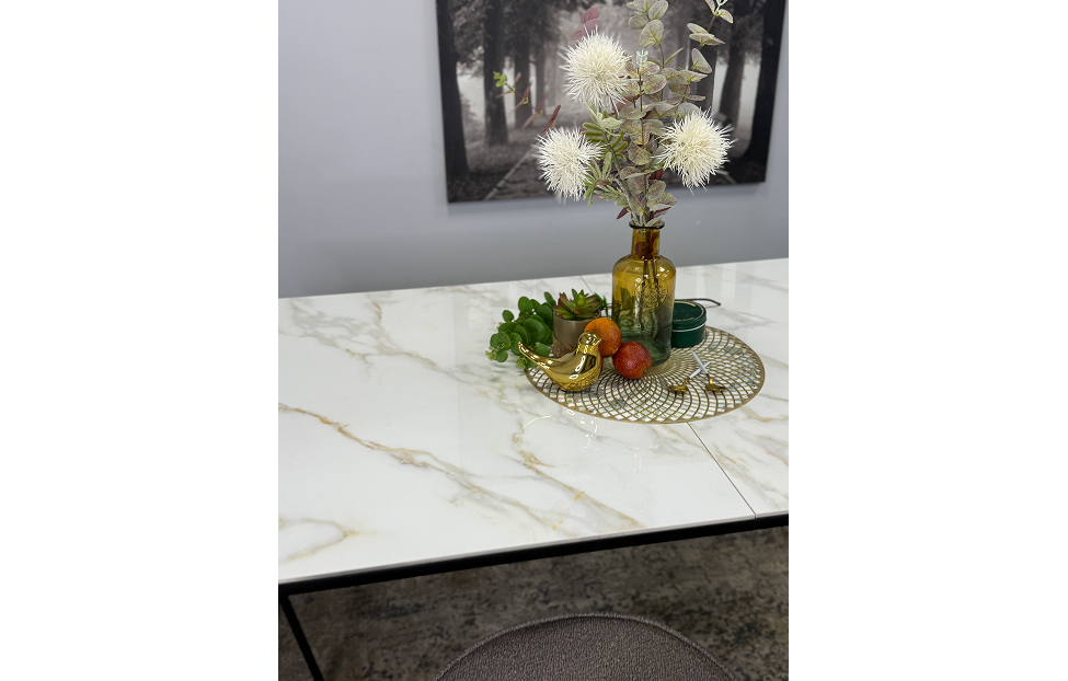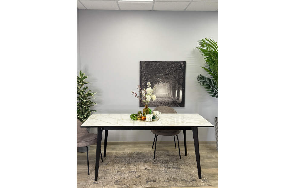 Стол обеденный Дега раздвижной KR1400 черный/керамика мрамор белый глянец
