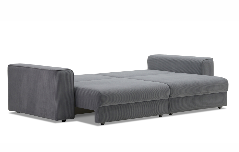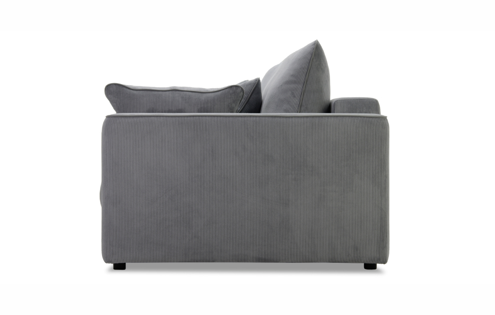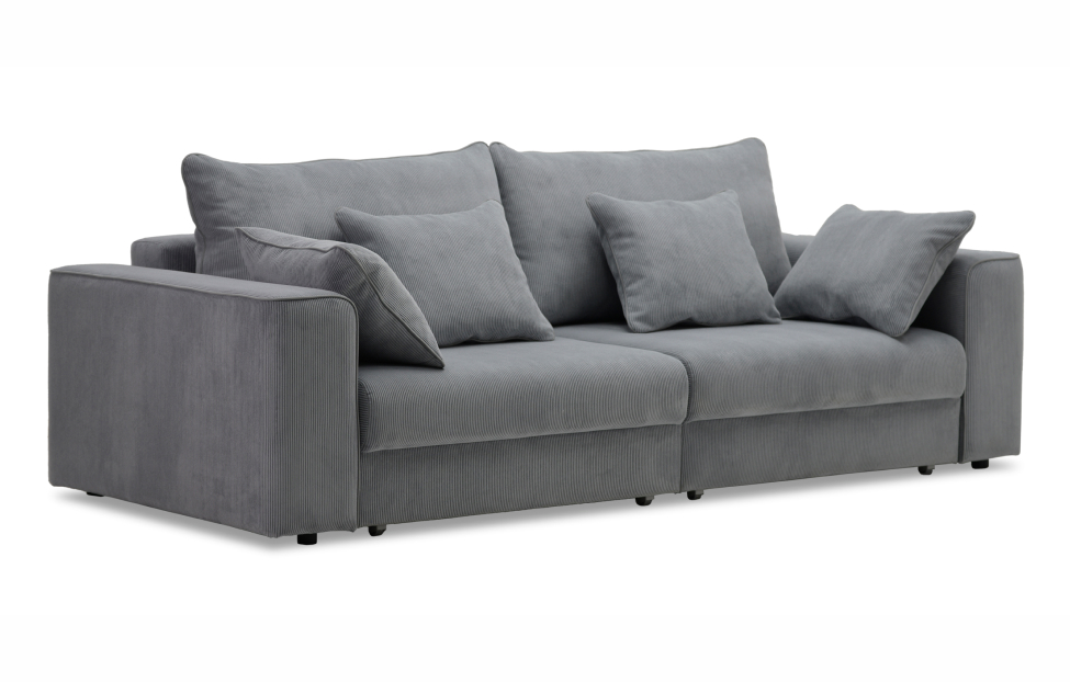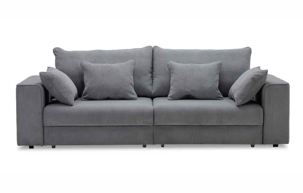 Диван выполнен в современном стиле, который будет гармонично смотреться в любом интерьере. Обивка из велюра c вертикальной текстурой актуального серого оттенка приятна на ощупь и легко чистится.