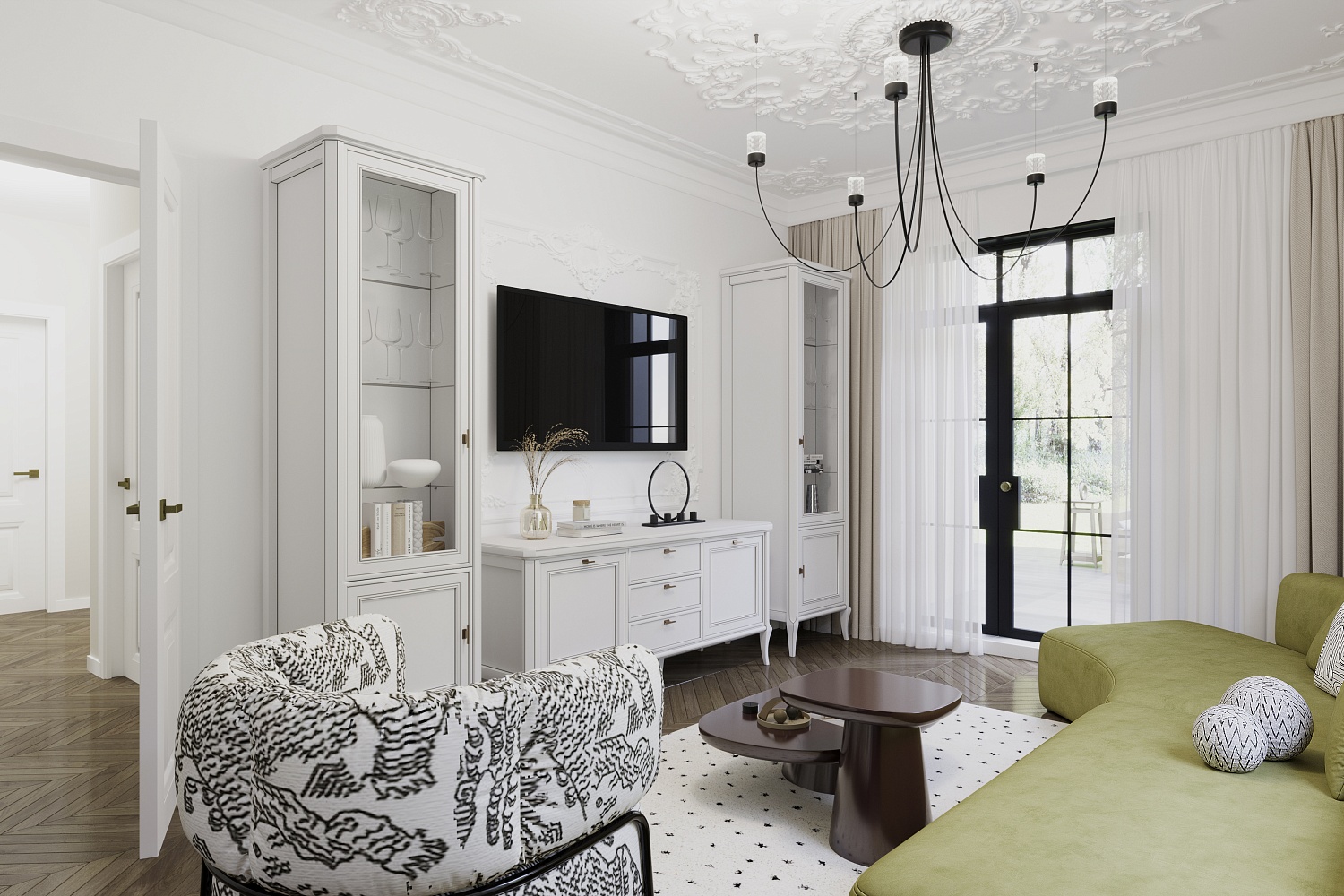 – описание: назначение для гостиной, цвет бело-серый, стиль неоклассика, размер 214.8x287x50.5 см.